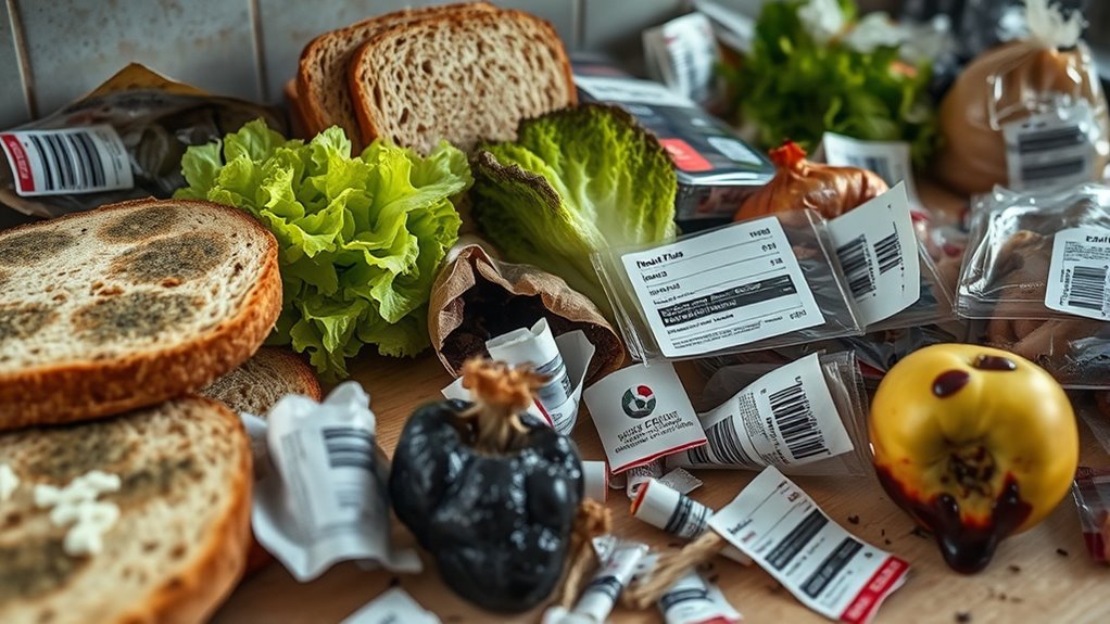 Understanding food codes and labels is essential for determining whether your food is still safe to eat. Food label terminology can be confusing, but knowing what these labels mean helps you identify spoilage indicators. Look for expiration dates, but also pay attention to codes like lot numbers or production dates that manufacturers include. These codes often reveal how fresh the product is and whether it’s past its prime. Spoilage indicators, such as changes in color, texture, or smell, are also critical clues. Recognizing these signs, along with understanding the labeling system, helps you make informed decisions and avoid consuming unsafe food. Proper interpretation of food labels guarantees your safety and reduces waste from discarding still-edible products. Additionally, familiarizing yourself with food code systems can help you quickly assess product freshness and safety.
