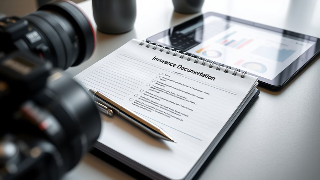Since your insurance policies and personal circumstances can change over time, it’s essential to update your documentation regularly. Staying current guarantees your records reflect any policy updates or claim adjustments, preventing surprises when you need them most. Regularly reviewing your info helps you spot gaps, correct errors, and adapt to life changes. Keep your documentation aligned with your current situation to avoid delays or issues during claims processing. Failing to update can weaken your coverage or cause claim denials. Additionally, understanding insurance documentation requirements ensures your records meet legal and policy standards, reducing the risk of claim disputes.