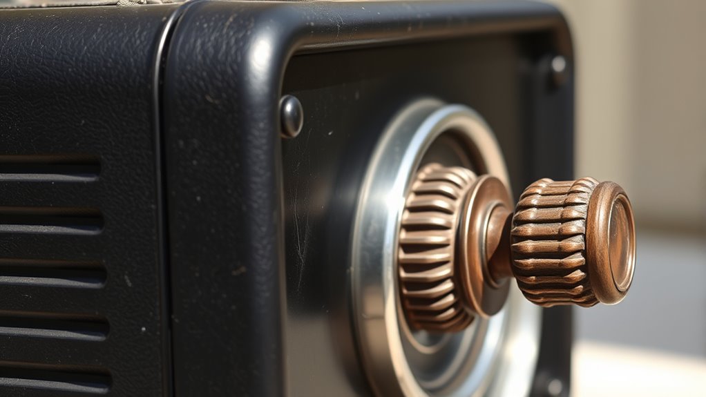 Temperature impacts your hand crank radio’s efficiency by affecting thermal expansion and material conductivity. When it’s hot, components may expand, causing internal friction and reducing efficiency. Conversely, cold temperatures lower material conductivity, making it harder to generate and transfer power effectively. You’ll notice that extreme temperatures can hinder your radio’s performance, so keeping it within moderate ranges helps maintain ideal power generation and prolongs its lifespan.