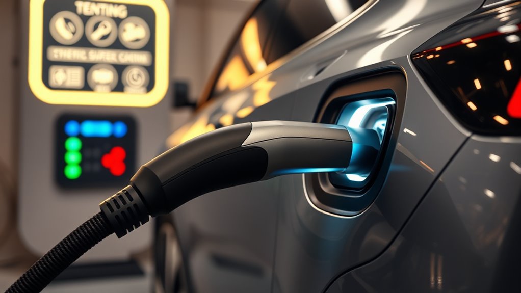 You need to follow specific electrical standards and safety regulations to guarantee your vehicle’s charging setup is compliant. Check that your accessories meet the National Electrical Code (NEC) requirements and are rated for automotive use. Avoid shortcuts, as non-compliant chargers can pose fire hazards or damage your vehicle’s electrical system. Always verify that your device installations adhere to local code mandates to keep yourself safe and avoid legal issues.