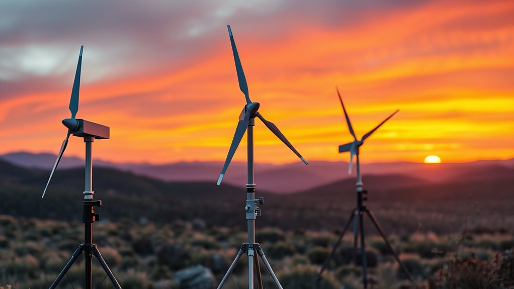 Think of portable wind turbines as your personal breeze chariots, carrying energy wherever you go. They’re your reliable companions in the wild, turning gusts into power like a skilled dancer catching every beat. With these turbines, off-grid living becomes less of a gamble and more of a smooth, flowing journey. Embrace the wind’s whisper and let your portable turbine be the steady drum that keeps your energy rhythm alive, no matter where you are.