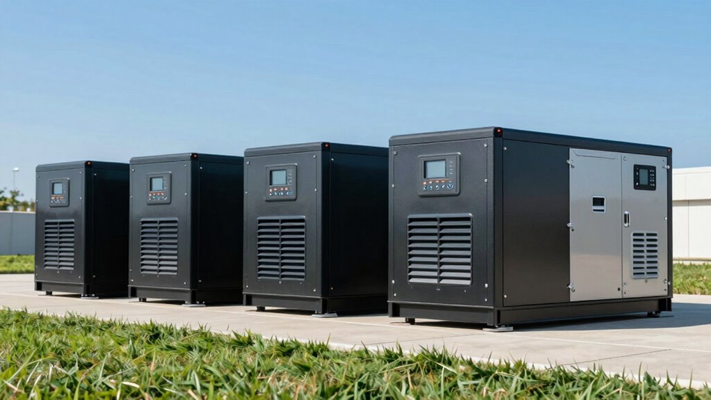 Yes, some air-cooled standby generators can run on alternative fuels like propane or natural gas. I’ve found that many models are designed to switch between these fuels easily, providing more flexibility and efficiency. Always check the manufacturer’s specifications to guarantee compatibility, and consider installation adjustments for safe and reliable operation. Using alternative fuels can be eco-friendly and often more cost-effective, especially if you already have a gas line or propane tank.