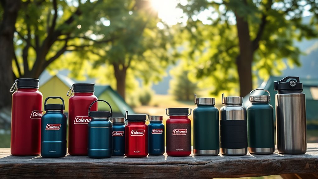 If you’re looking for the 15 best Coleman water containers that deliver reliable hydration on the go, I’ve got you covered. These options include sturdy, portable jugs, collapsible containers, and models with spigots for easy pouring. They’re made from durable, impact-resistant materials, come in various sizes for different needs, and are perfect for camping, outdoor activities, or emergencies. Keep going to discover detailed features and help you pick the perfect water container for your adventures.