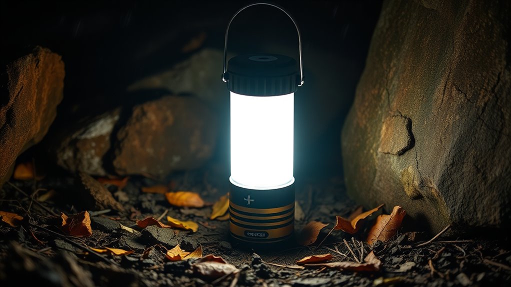 Selecting a compact emergency lantern involves more than just considering its brightness; battery life duration plays an essential role in ensuring you stay illuminated when it matters most. The length of time a lantern can provide light without recharging or replacing batteries is vital during power outages or outdoor adventures. Most models offer between 10 to 50 hours of continuous light, depending on brightness settings and battery capacity. Rechargeable lanterns typically specify runtime at different levels, influencing how long they last on a single charge. Battery type also matters—lithium-ion, AA, AAA, or D-cell batteries vary in capacity and energy density, impacting overall runtime. For extended emergencies, choosing a lantern with longer battery life means fewer interruptions and more reliable illumination during critical moments.