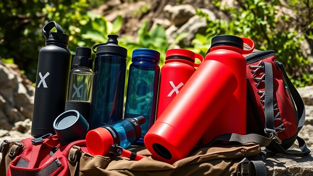 Looking for the best compact water containers for travel and outdoor adventures? I’ve found options like BPA-free foldable bags, impact-resistant jugs with spigots, and lightweight carry bottles that pack a punch in durability and convenience. Whether I need a small 1.3-gallon bag or a larger 5-gallon jug, these containers are sturdy, leak-proof, and easy to carry. Continue exploring to discover the top choices perfect for your next adventure.