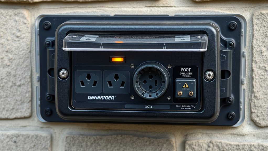 These inlet boxes are highly compatible with most generator models, especially when you choose a universal or standard size. I always recommend checking your generator’s specifications and the inlet box’s connection type before purchasing. Most brands design their boxes to accommodate common connectors, making installation straightforward. If you’re unsure, I suggest consulting the manufacturer’s guidelines or contacting customer support to guarantee perfect compatibility and a seamless connection.