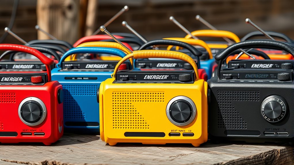 If you’re looking for the 15 best Energizer hand crank radios that keep you powered up anywhere, I’ve tested models with reliable power options like hand cranks, solar panels, and rechargeable batteries. These radios often feature NOAA alerts, SOS functions, bright flashlights, and sturdy designs for outdoor use. They’re perfect for emergencies or adventures. Keep going, and I’ll share some top picks and what to think about when choosing the right one for you.
