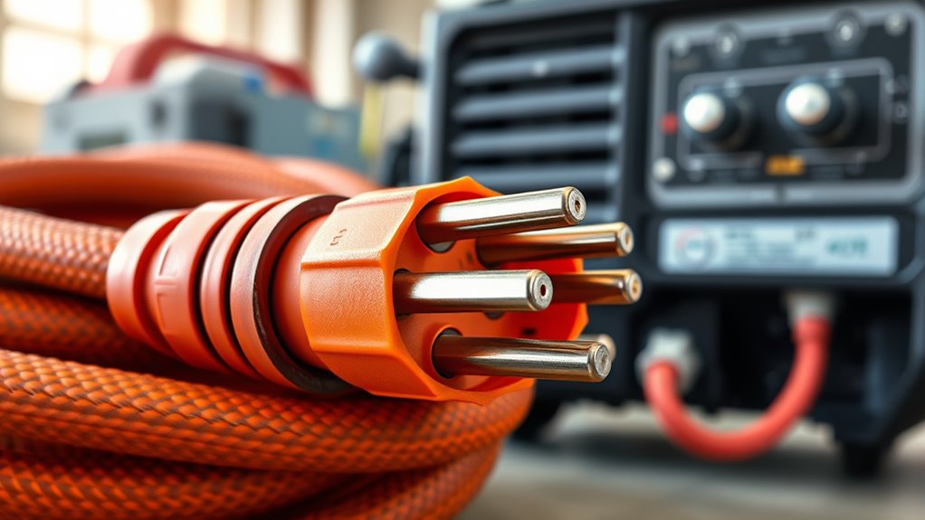 When choosing a 30-amp generator cord for medical devices, I look for heavy-duty, weatherproof options with high-quality copper wiring and secure, twist-lock connectors. Certifications like ETL or UL are essential for safety and reliability. I prefer cords that are durable, flexible in cold weather, and come in different lengths to suit various setups. If you stay with me, I’ll share top picks and tips to find the best cord for your needs.