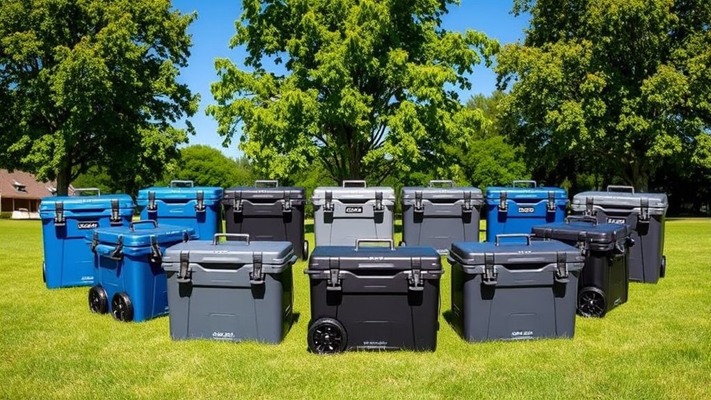 Have you ever wondered what makes a cooler keep ice longer? It all comes down to insulation quality and duration. High-quality materials like polyurethane foam and freezer-grade gaskets are key—they slow heat transfer and lock cold air inside. Thicker walls, typically 2-3 inches in premium coolers, provide better insulation, extending ice retention. A good gasket seals tightly, preventing warm air from sneaking in and cold air from escaping. This combination reduces energy loss and temperature fluctuations, even in hot environments above 80°F. Proper insulation allows your cooler to keep contents cold for several days, making it ideal for outdoor adventures. When choosing a Goal Zero cooler with wheels, prioritize insulation quality to ensure your ice lasts longer and your food stays fresh.