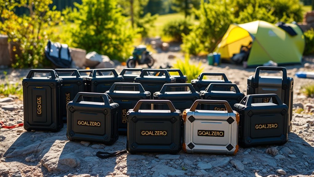 If you’re looking for reliable power on the go, I recommend checking out the top Goal Zero portable power stations like the Yeti 300, 1000X, and 6000X, along with the durable Yeti PRO 4000 for heavy-duty needs. These models offer varying capacities, fast recharging, and versatile ports for devices, outdoor adventures, or backup power. To find the best fit for your needs and discover some handy accessories, keep exploring the options detailed below.