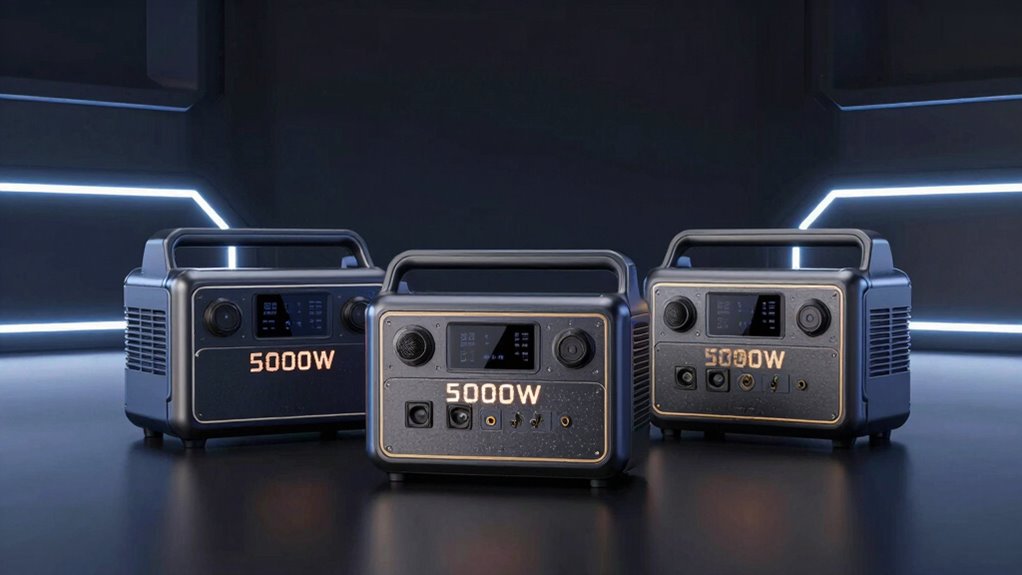 In my opinion, the top three portable power stations with 5000W capacity in 2026 are the OUPES Guardian 6000, EF ECOFLOW DELTA Pro 3, and Oukitel BP5000 Pro MAX. They all offer scalable batteries, fast recharging, and multiple outputs for heavy-duty use. If you want to know more about their features, durability, and why they stand out, keep exploring—there’s plenty to discover.