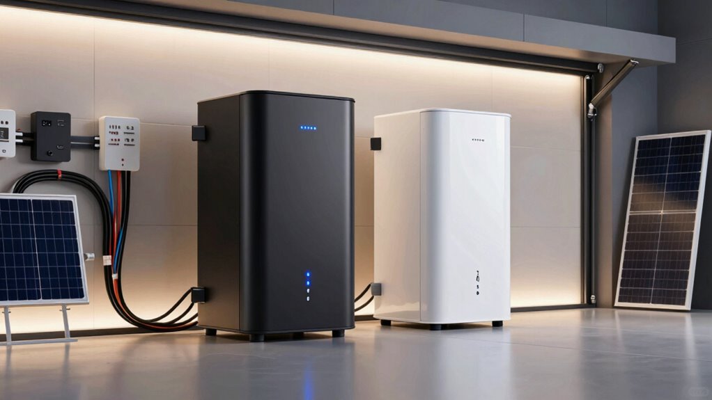 Evaluating the cost and investment involved in home battery systems is key to making a smart choice. The initial price can vary widely, from a few thousand to over ten thousand dollars, depending on capacity and features. It’s important to contemplate the long-term return on investment by calculating potential savings on energy bills and exploring government incentives or tax credits. Higher-capacity systems with scalability options tend to require a bigger upfront investment but provide longer backup power and room for future expansion. Don’t forget to factor in installation and integration costs, which can considerably impact total expenses. Additionally, maintenance and replacement costs over the system’s lifespan influence overall ownership costs, so including these in your analysis ensures a well-informed decision.