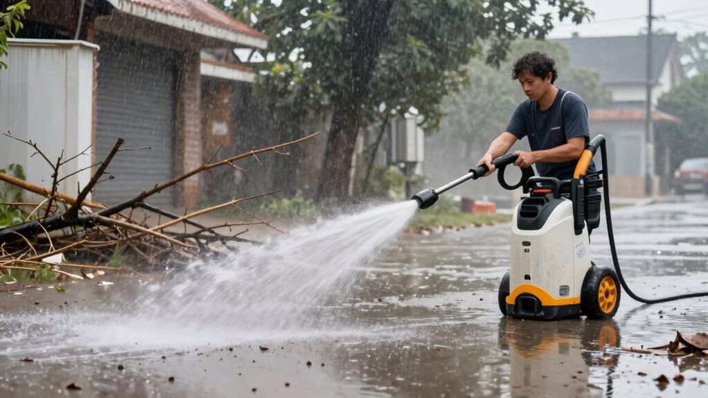 What Safety Precautions Are Essential When Using High-Pressure Washers in Storm-Affected Areas?