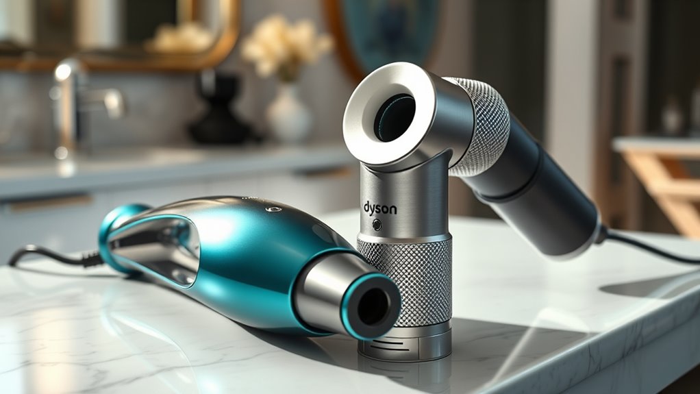 When comparing the Shark FlexStyle and Dyson Airwrap, I found both are versatile styling tools packed with attachments for curls, straights, and volume. The Shark is more budget-friendly, user-friendly, and great for quick, everyday styles. The Dyson offers advanced airflow and ionic technology for pro results, but at a higher price. To decide which fits your needs best, keep exploring the features and benefits of each—there’s more to discover below.