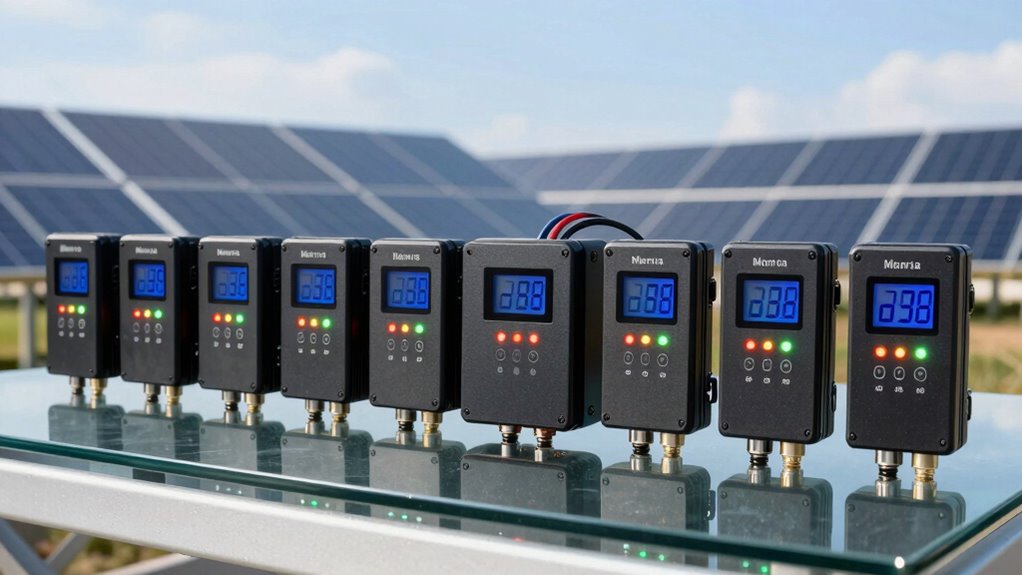 Choosing the right 100A MPPT solar charge controller is like finding a reliable partner for your solar journey—trustworthy yet adaptable. While some controllers offer advanced Bluetooth features, others focus on simplicity with LCD displays. It’s a balance between tech-savvy and straightforward. Just as a sturdy foundation supports a thriving home, selecting the right controller guarantees your solar system’s efficiency and longevity. Make your choice wisely, and let your solar adventure shine brighter than ever.