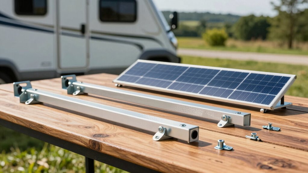When evaluating solar panel mounting kits for your RV, the durability of the materials plays a crucial role in ensuring long-term performance. I look for kits made from corrosion-resistant materials like anodized aluminum or stainless steel, which can withstand harsh weather conditions. The longevity of these kits depends on their resistance to rust, UV exposure, and environmental wear, often lasting 10-25 years. High-quality materials also maintain structural integrity, preventing panels from shifting or getting damaged during heavy wind, rain, or snow. Lightweight yet sturdy options like aluminum alloys make installation easier without sacrificing strength. Additionally, weatherproofing features like rubber seals and waterproof coatings provide extra protection against moisture infiltration and corrosion, ensuring the mounting remains durable over time.