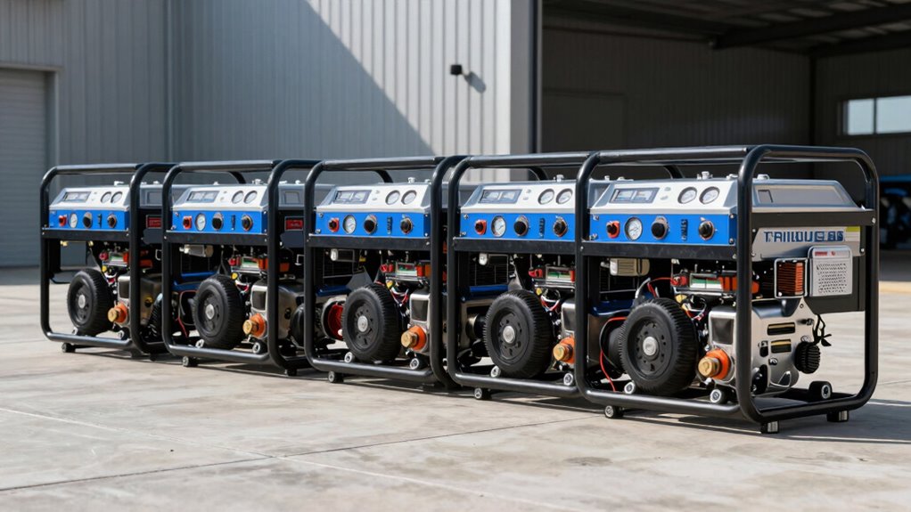 Have you ever wondered how long your generator can run on a single tank of fuel? With a large fuel tank, like 9.5 gallons, a tri fuel generator can operate up to 19 hours at 50% load, offering impressive endurance. Fuel efficiency is boosted by advanced engine tech, such as electronic fuel injection, which cuts fuel consumption and emissions. Switching between gasoline, propane, and natural gas allows you to optimize runtime based on fuel availability and cost, making your generator more adaptable. The ability to run effectively on multiple fuels without sacrificing performance is crucial for maximizing efficiency. Additionally, digital displays and monitoring features help you track fuel levels and consumption, giving you better control over runtime and ensuring you’re never caught unprepared.
