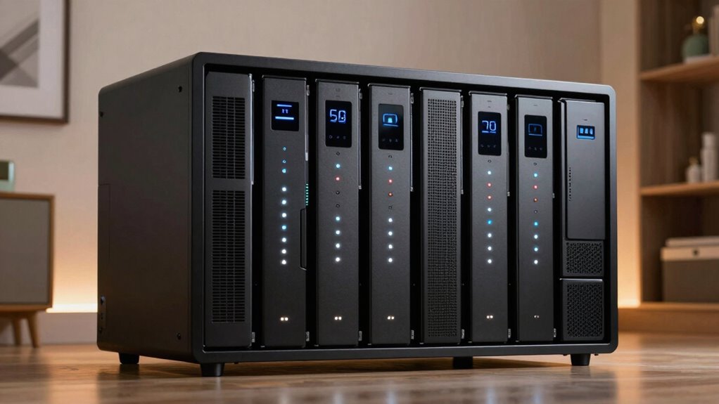 Choosing the right UPS for your home server rack is like finding the perfect safety net—it guarantees your data stays secure even when the power dips. With options like CyberPower, APC, and Eaton, there’s a reliable fit for every need. Remember, it’s about balancing power, features, and budget. When you pick wisely, you’re building a fortress against unexpected outages, keeping your digital world safe and sound, no matter what comes your way.