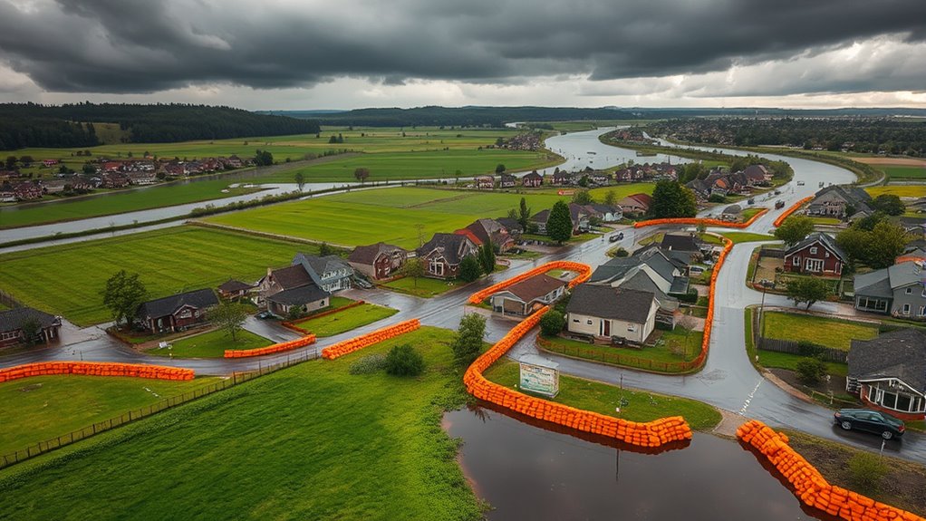Finally, consider safeguarding your property by elevating electrical systems and installing flood barriers if feasible. These measures can greatly reduce damage and make cleanup easier afterward. Remember, flood preparedness isn’t a one-time effort—it’s an ongoing process that requires attention and updates. By understanding your evacuation plans, securing flood insurance, and staying informed, you’ll be better equipped to protect yourself, your loved ones, and your property against the unpredictable threat of floods.